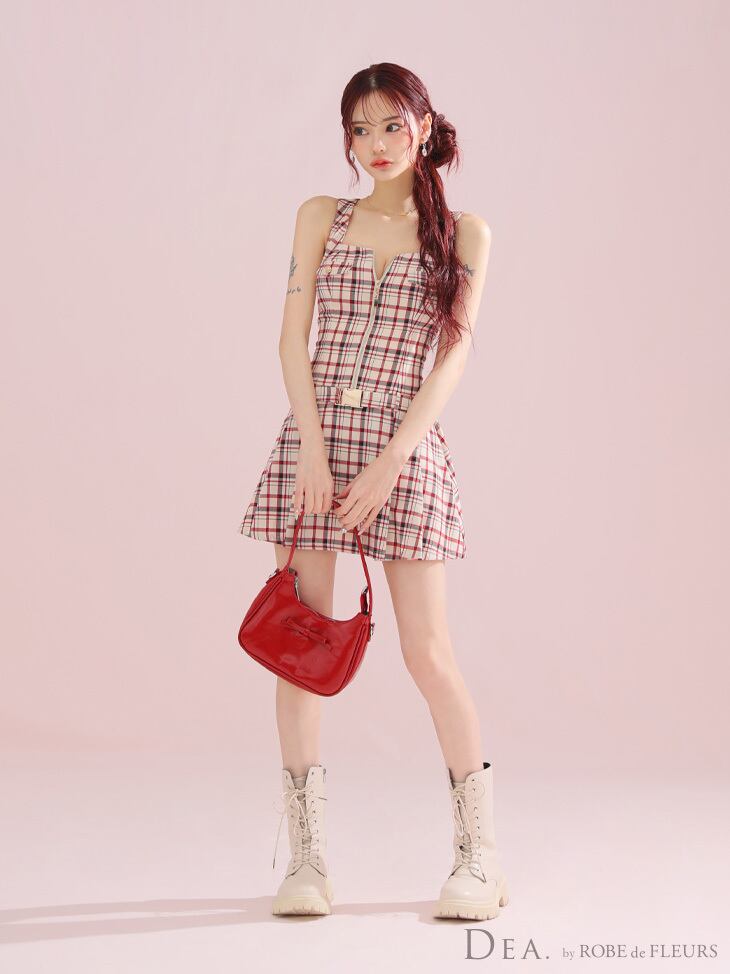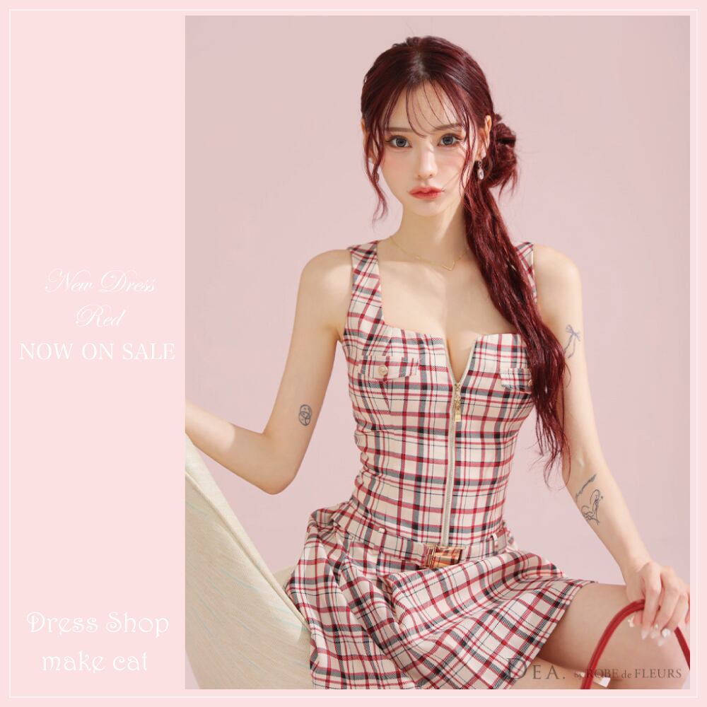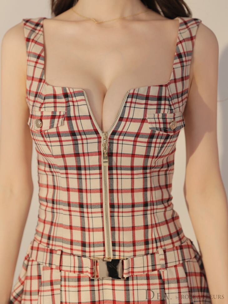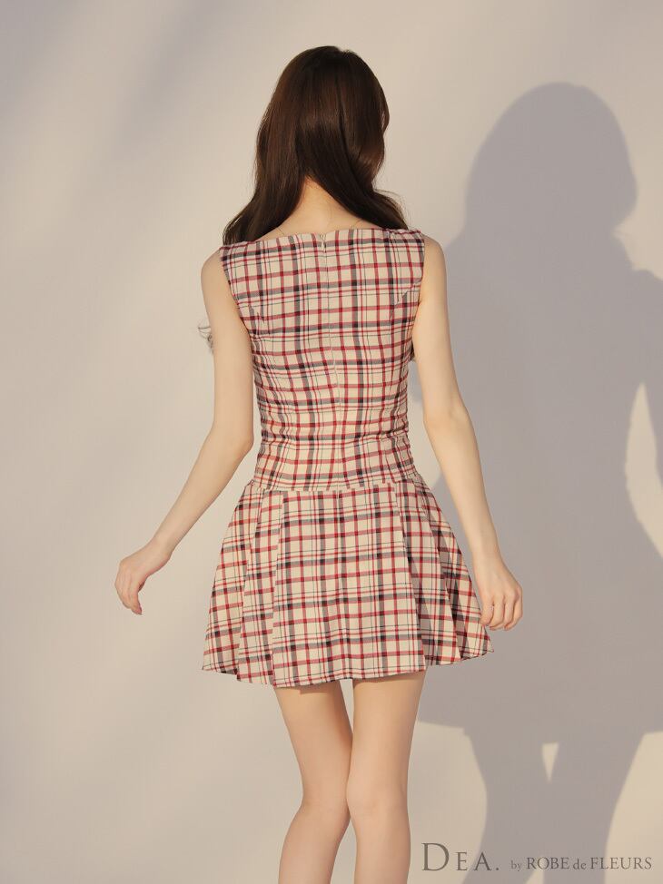 【DEA by ROBE de FLEURS 】【即納】【当店価格】【税込】チェックノースリーブベルトデザインミニキャバドレス 3390 (DE3390)