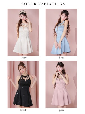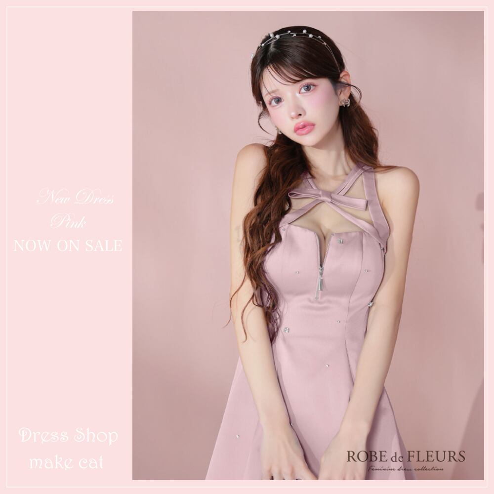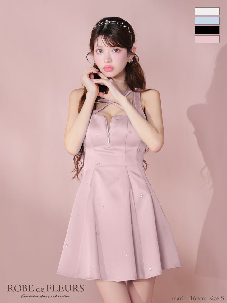 【ROBE de FLEURS 】【即納】【当店価格】【税込】サテンネックリボンバストジップフレアミニキャバドレス 3597 (fm3597)