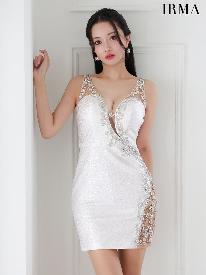 【IRMA JEAN MACLEAN】【送料無料】【即納】【当店特別価格】【税込】スパンコール / ラメニット/ ビジュー/ ノースリーブ/ シアー/ ストレッチ/ タイト/ ミニドレス/ キャバドレス [41735]