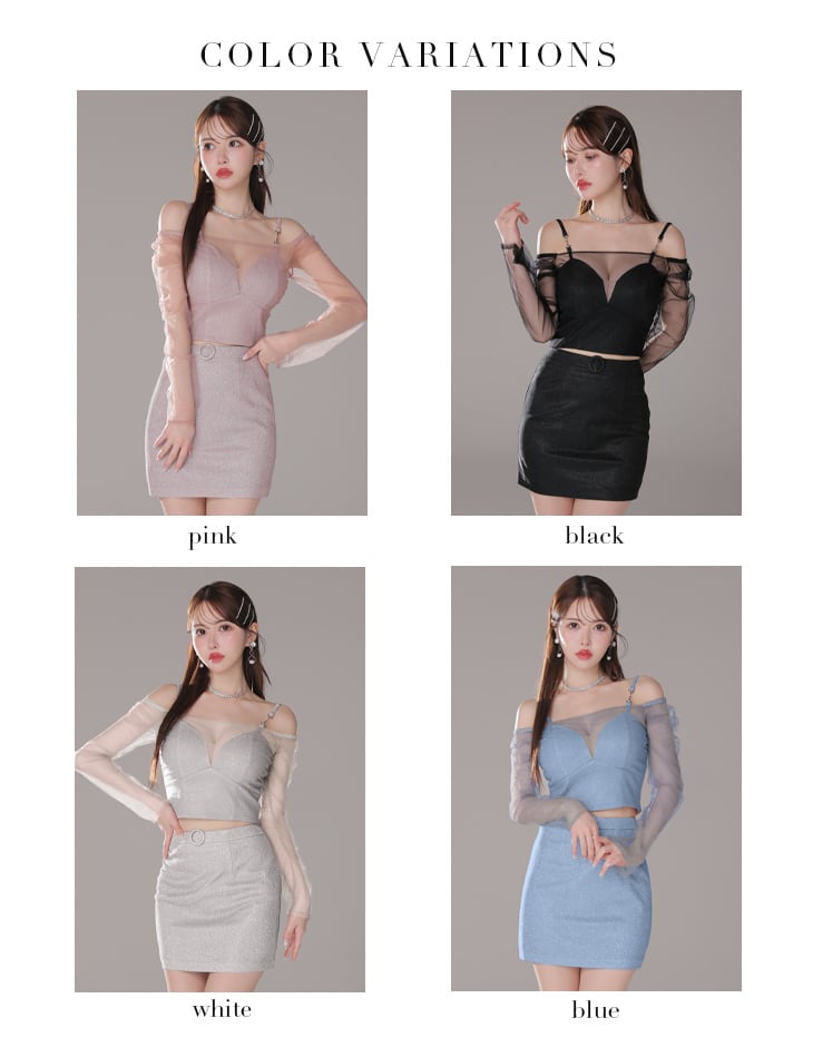 【ROBE de FLEURS Glossy】【送料無料】【即納】【当店特別価格】【税込】チュールスリーブラメニットセットアップミニキャバドレス 3564 (GL3564)