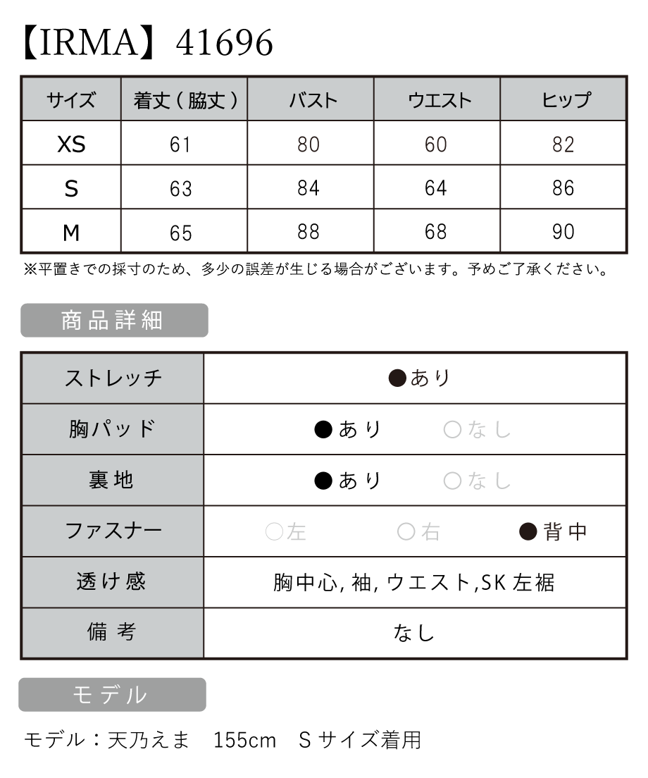 [透け] バスト中央、ウエスト、袖、スカート左裾