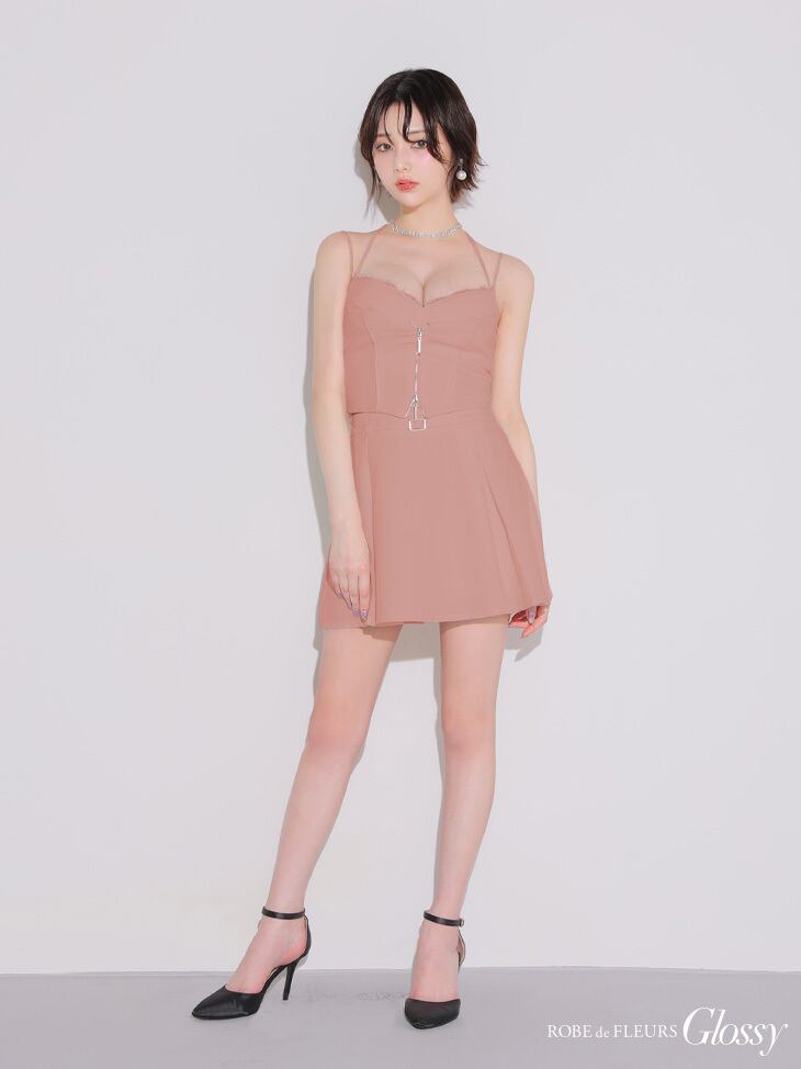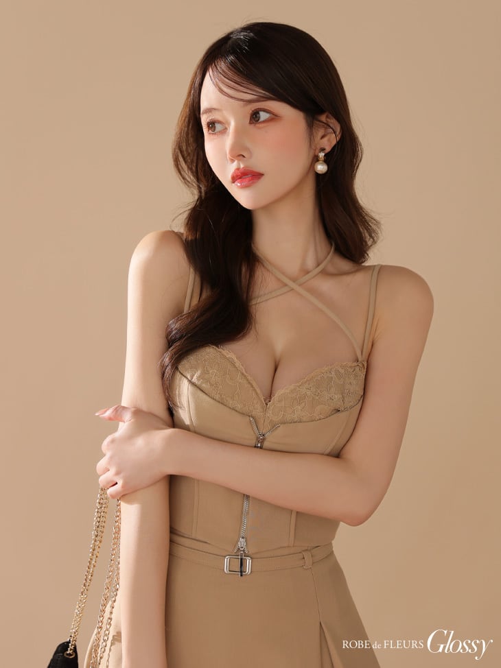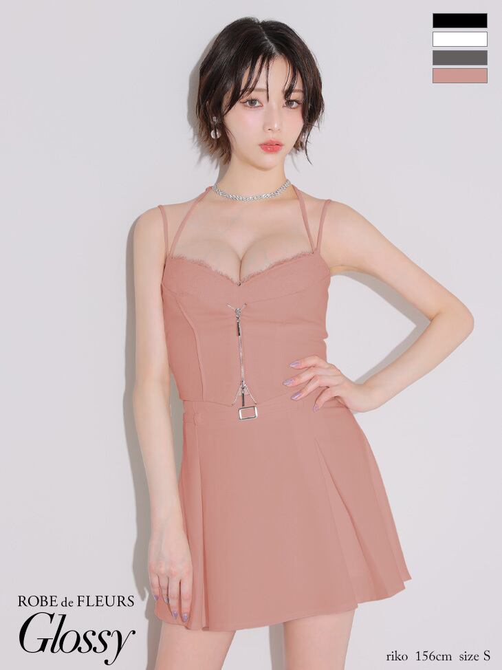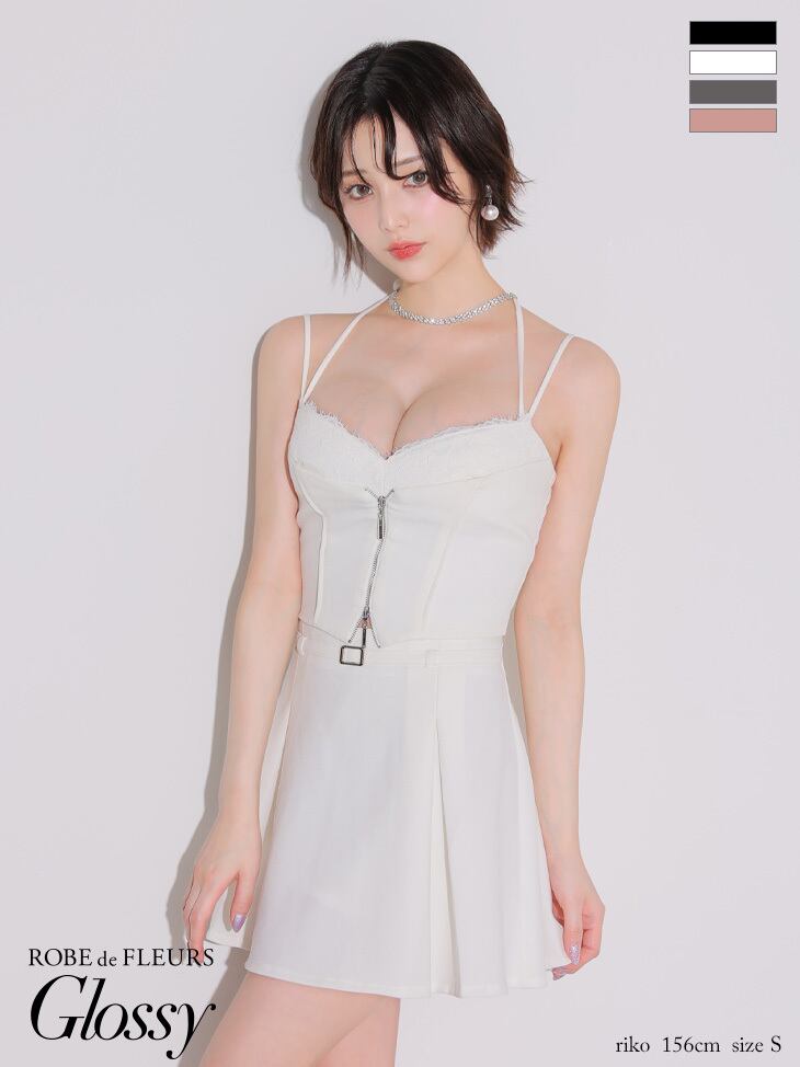 【ROBE de FLEURS Glossy】【送料無料】【即納】【当店特別価格】【税込】【XSサイズあり】フロントレースセットアップフレアミニキャバドレス(GL4120) 4120