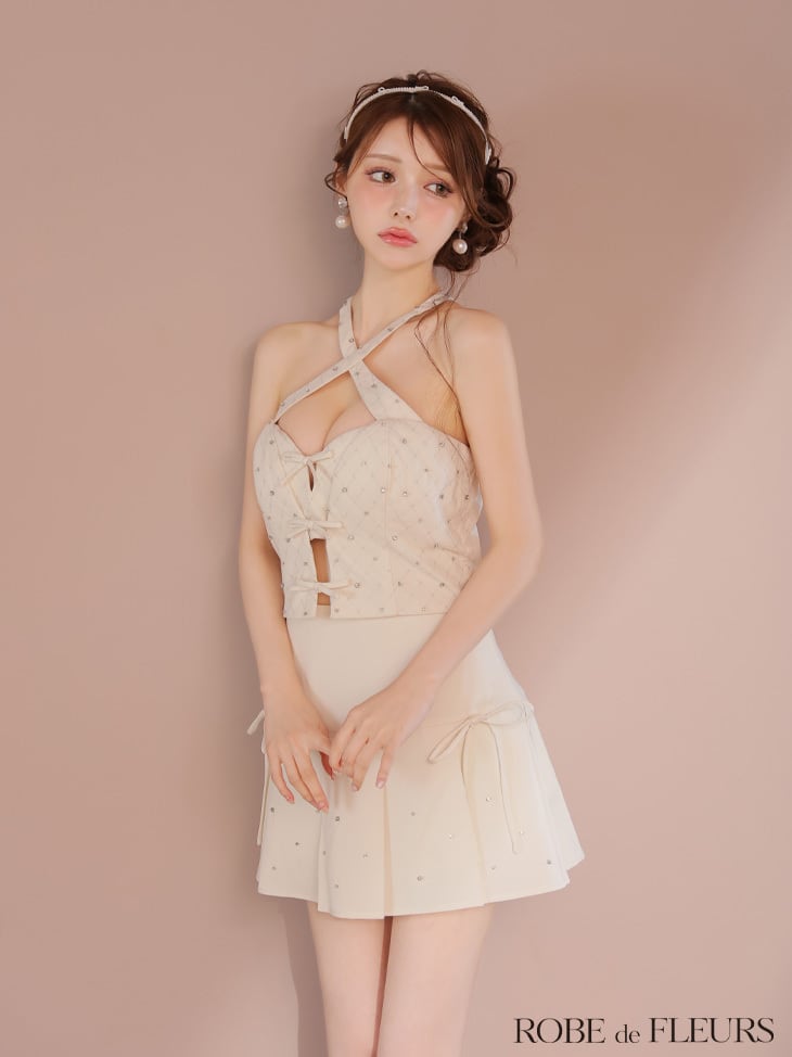 【送料無料】【即納】【ROBE de FLEURS 】【当店価格】【税込】クロスホルタービジューミニリボンセットアップ 4400 fm4400
