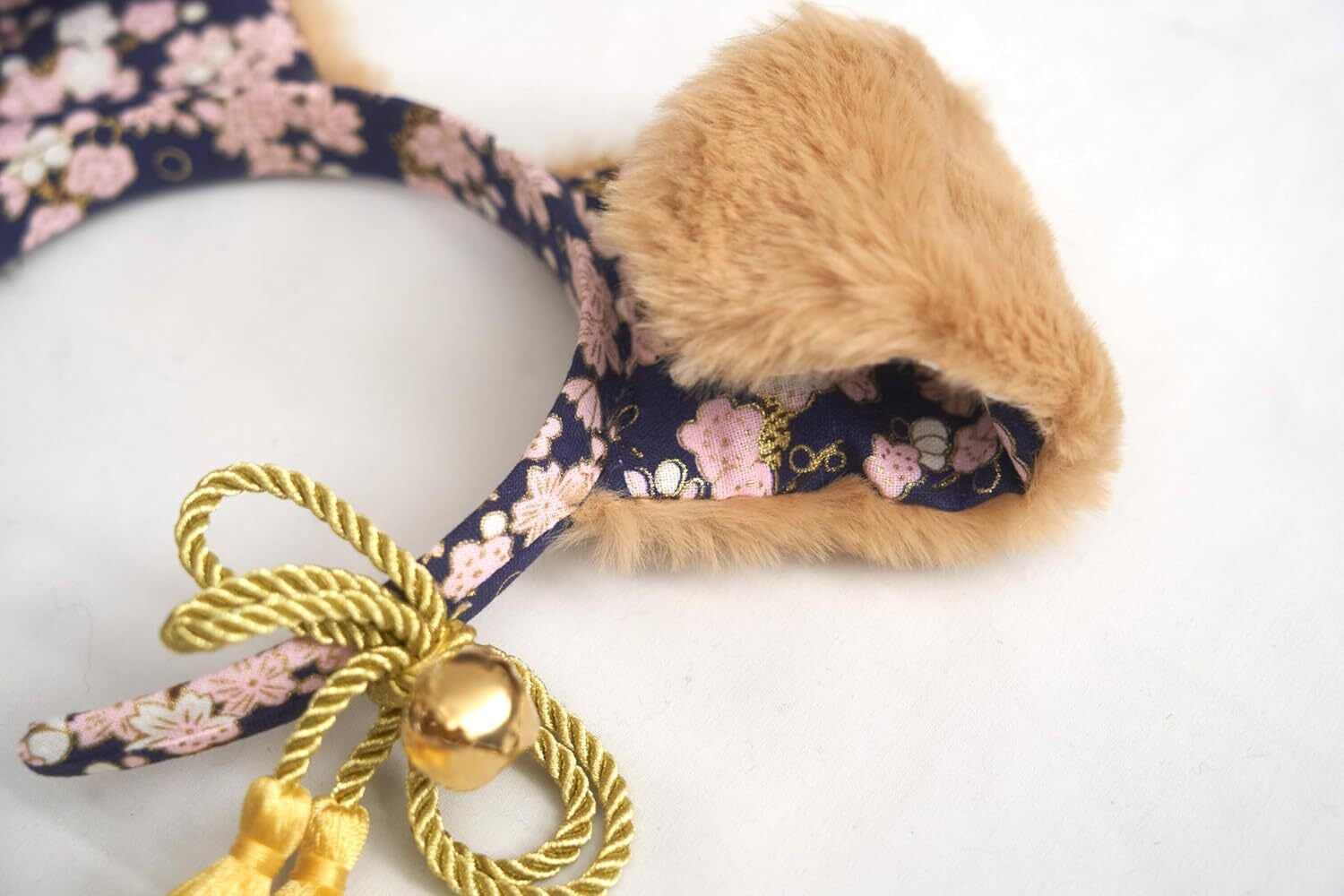 柴犬をイメージしたふわふわファーに耳中は桜を散らした落ち着いた色味の和柄生地を使用。