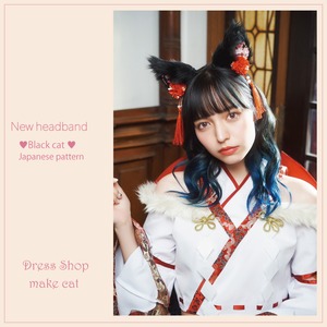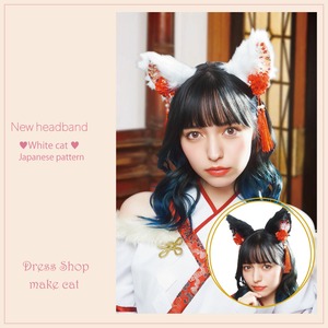 【make cat】コスプレ 和柄小物 和柄カチューシャ 白猫/黒猫