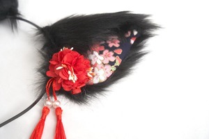 毛足の長いファーに耳中は桜を散らした可憐な和柄生地を使用。