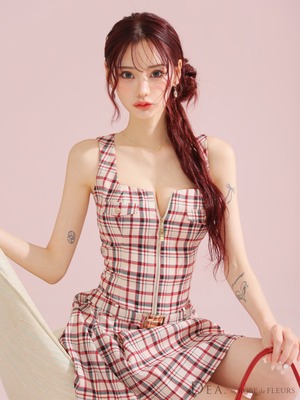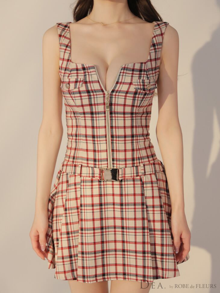 【DEA by ROBE de FLEURS 】【即納】【当店価格】【税込】チェックノースリーブベルトデザインミニキャバドレス 3390 (DE3390)