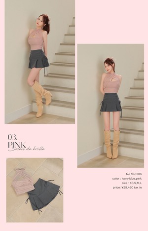 上品な肌見せが叶うトップスとプリーツスカートのセットアップ。