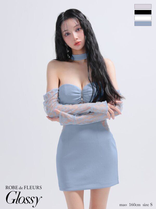 【ROBE de FLEURS Glossy】【送料無料】【即納】【当店特別価格】【税込】袖取り外し可能 レースベアチョーカータイトミニキャバドレス 4100 (GL4100)