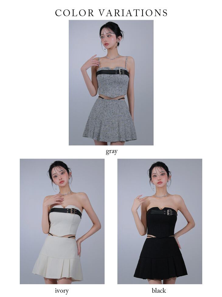 ツイード生地と合皮の組み合わせがかわいいセットアップドレス。