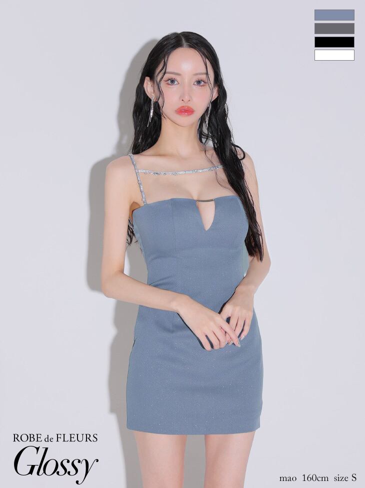ROBE de FLEURS Glossy】【即納】【送料無料】【当店特別価格】【税込】【XSサイズあり】デコルテビジューバストカットシンプルタイトミニキャバドレス(GL3590