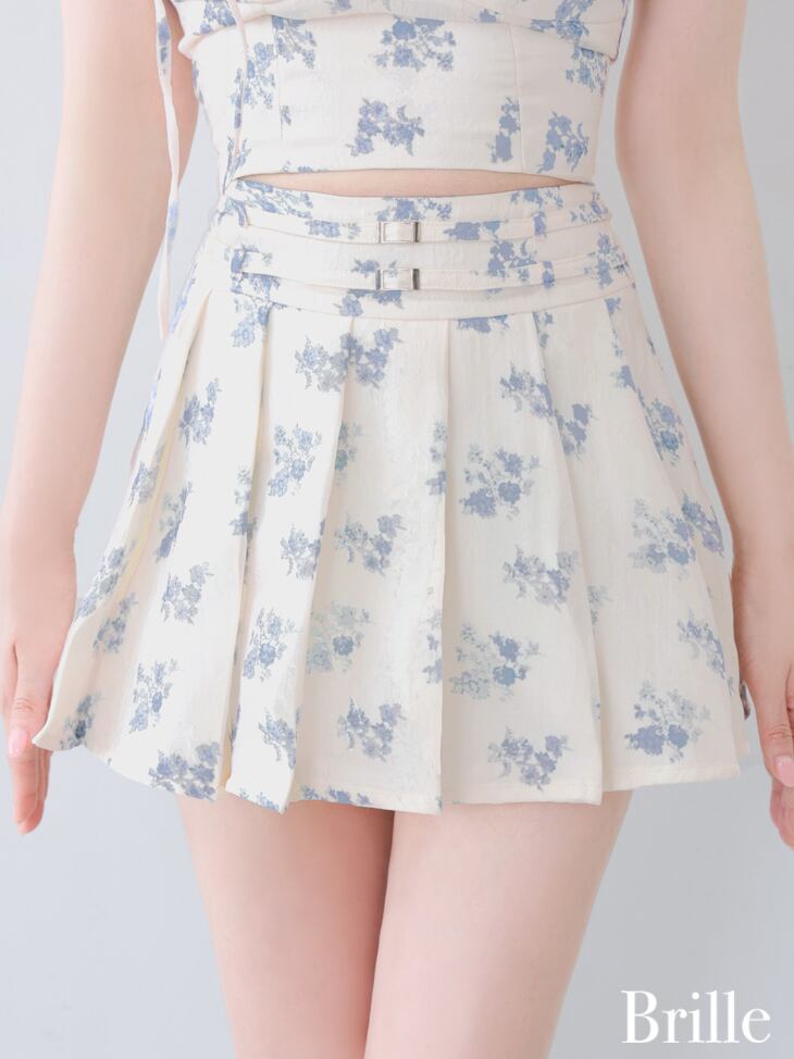 華奢なベルト付きのプリーツスカートはハイウエストで美脚効果◎