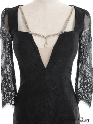 ♥️Special SALE♥️【送料無料】【即納】【当店特別価格】【税込】バストビジュー×レース袖ありタイトミニキャバドレス【ストレッチあり】 2826 (GL2826)