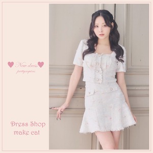 ツイード 半袖 スクエアネック マーメイド フレア パールボタン ミニドレス キャバドレス [1345]