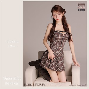 【ROBE de FLEURS 】【送料無料】【即納】【当店特別価格】【税込】 レザーミニリボンチェックフレアセットアップミニキャバドレス ( fm4308 )