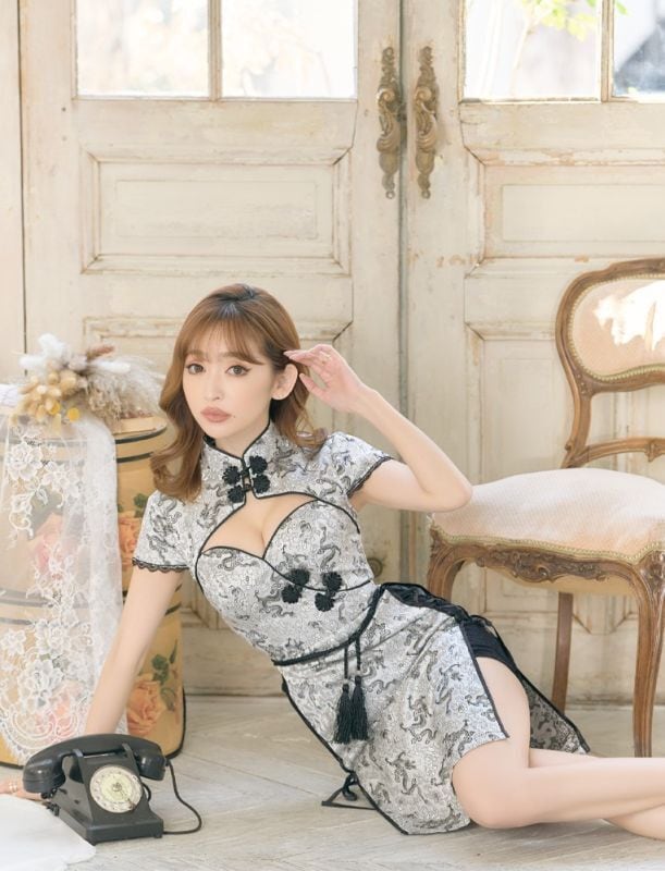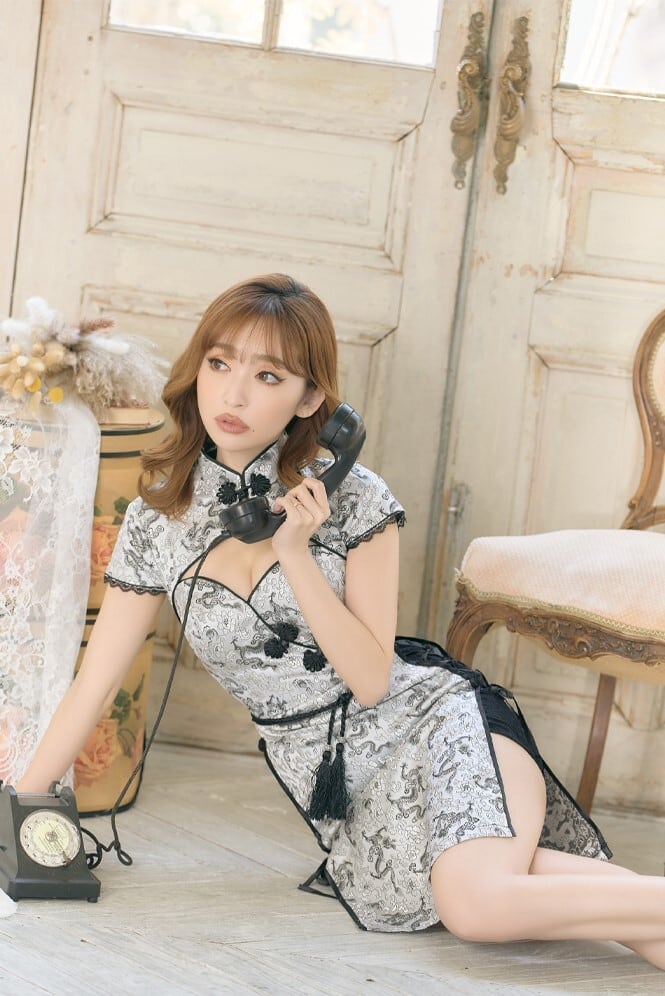 レースがチャイナドレスに上品な魅力をプラスし、女性らしい柔らかさを演出します。
