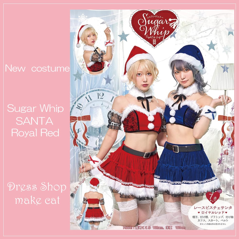 【make cat】SugarWhip【即納】コスプレ クリスマス レースビスチェサンタ ロイヤルレッド レディース ブルー