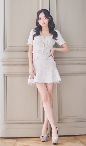 膝上のミニ丈は、スタイルアップ効果を生み出し、脚を長く見せる効果もあるので、女性らしさを引き立てます。