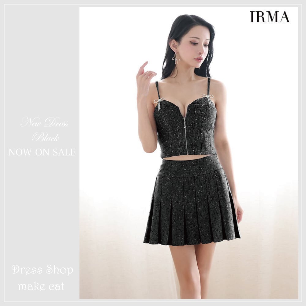 ミックスツイード/ フロントジップ/ リボンブローチ/ キャミソール/ プリーツ/ フレア/ セットアップ/ ミニドレス/ キャバドレス [55091]