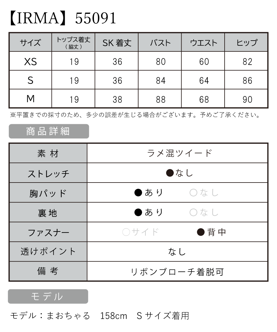[着丈]トップス(脇下):約19cm スカート丈:約36cm