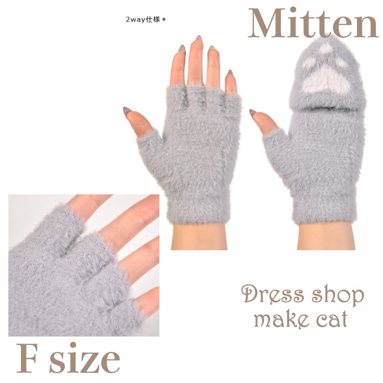 ♥️Special SALE♥️【make cat 】【即納】肉球2way ミトン★ シャギーニットハート グローブ 防寒 指抜き手袋 ミトン スマートフォン対応
