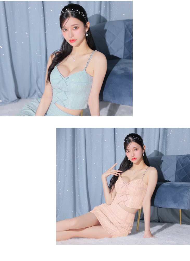 【ROBE de FLEURS 】【送料無料】【即納】【当店特別価格】【税込】 トリプルミニリボンスパンコールセットアップキャバドレス(fm3543)
