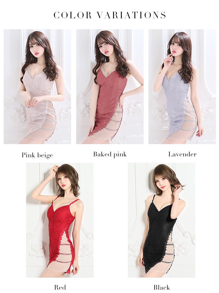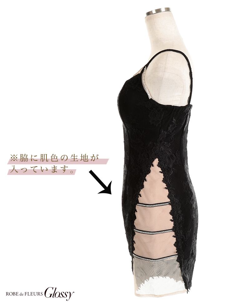 【ROBE de FLEURS Glossy】人気再入荷(Sサイズ) 片サイドレース切替×キャミソールタイトミニドレス(GL2009)