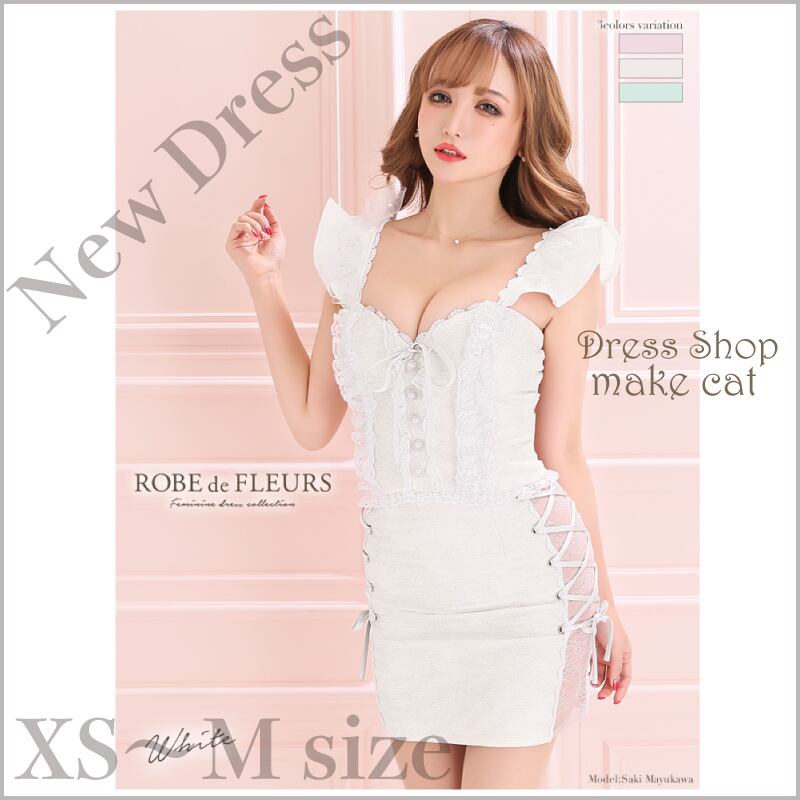 【ROBE de FLEURS】【即納】編み上げリボン×フリルスリーブタイトミニドレス (fm2310)