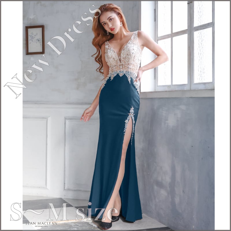 【JEAN MACLEAN】【即納】4色展開 (S.Mサイズ) 刺繡バイカラー/シアー/LongDress【11901】
