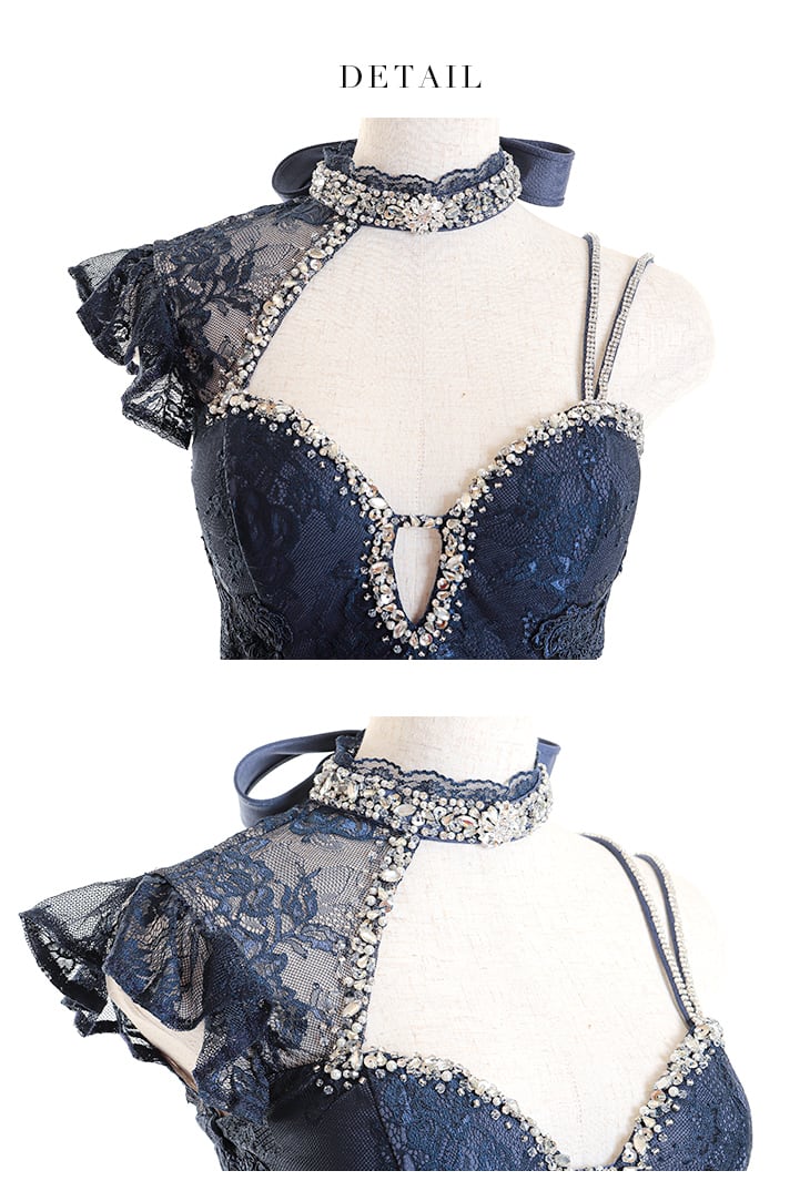 【ROBE de FLEURS Glossy】【即納】【XSサイズあり】切替レース×ビジューアシンメトリータイトミニドレス(GL2395)