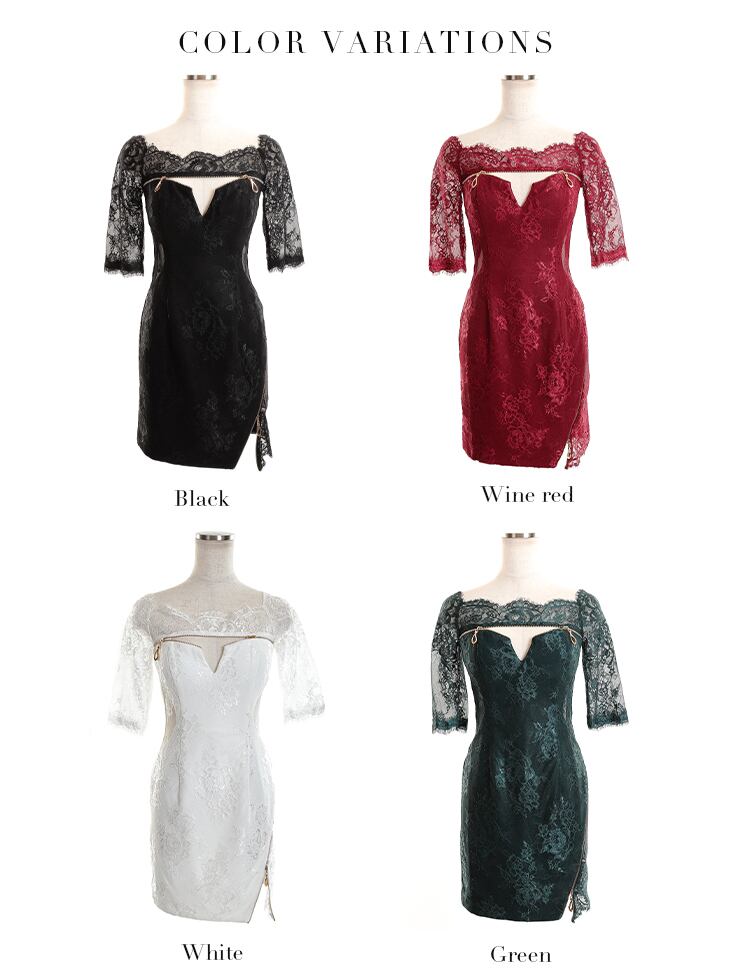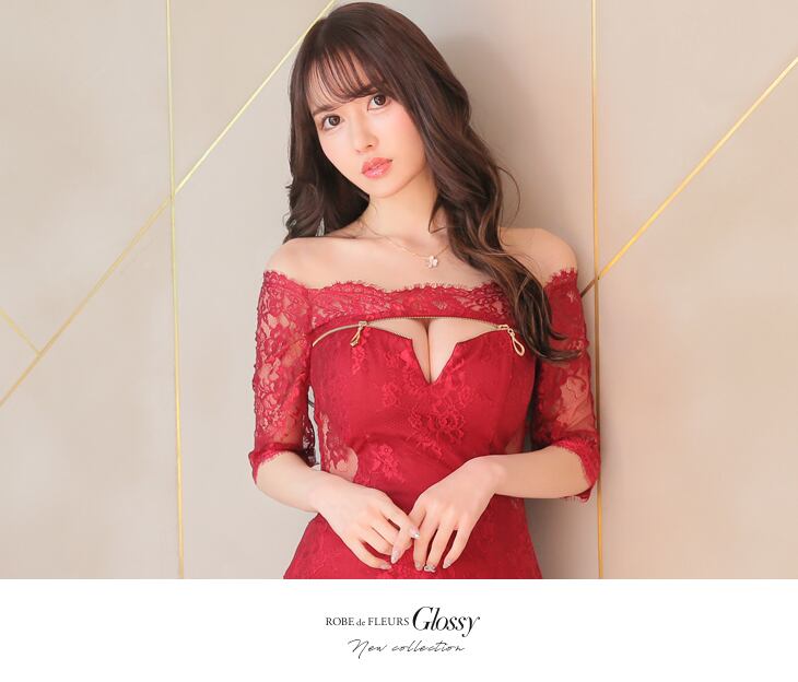 【ROBE de FLEURS Glossy】【即納】【XSサイズあり】オフショルフロントジッパータイトミニドレス(GL2413) 2413