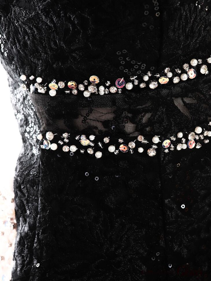【ROBE de FLEURS Glossy】【即納】【XS.S.M】スパンコールレース×サイドチュール切替タイトミニドレス(GL2504)