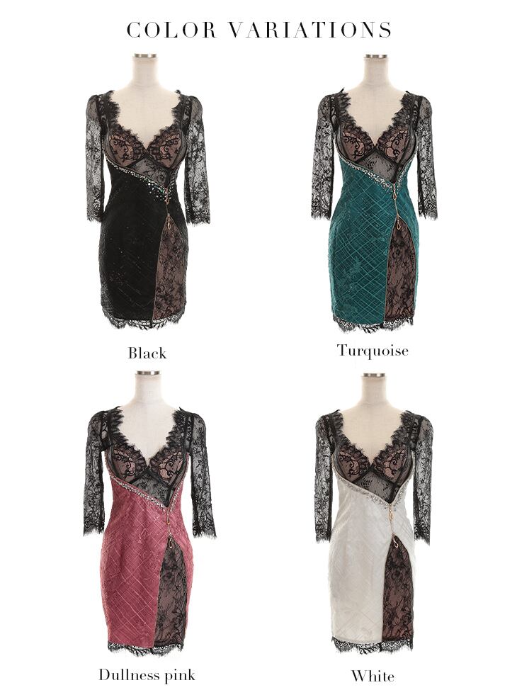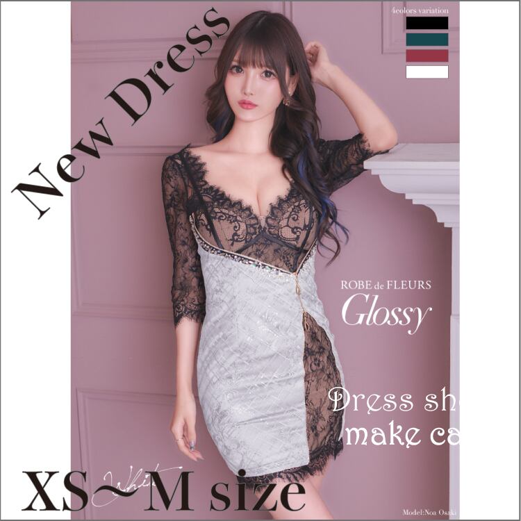 【ROBE de FLEURS Glossy】【即納】【XS.S.M】ジップデザイン×ラグジュアリータイトミニドレス(GL2342)