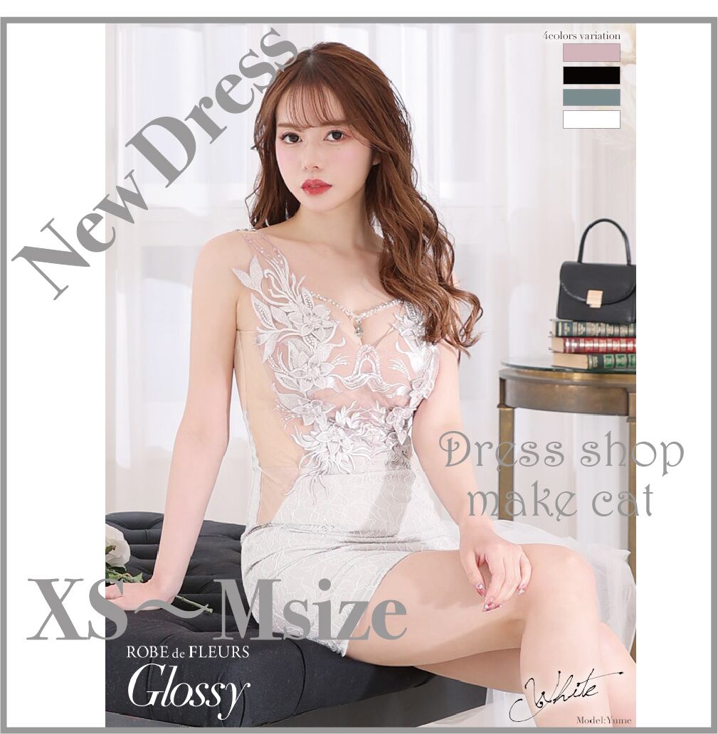 【ROBE de FLERUS Glossy】【即納】ビジューチェーンxフラワーモチーフタイトミニドレス(GL2551)【税込】