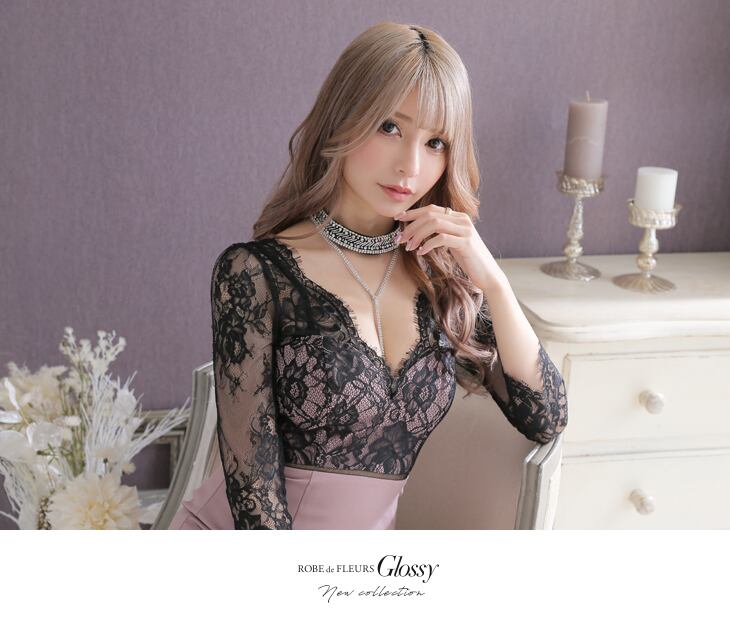 【ROBE de FLERUS Glossy】【即納】ロングスリーブ×レースタイトミニドレス[チョーカー付き](GL2389)