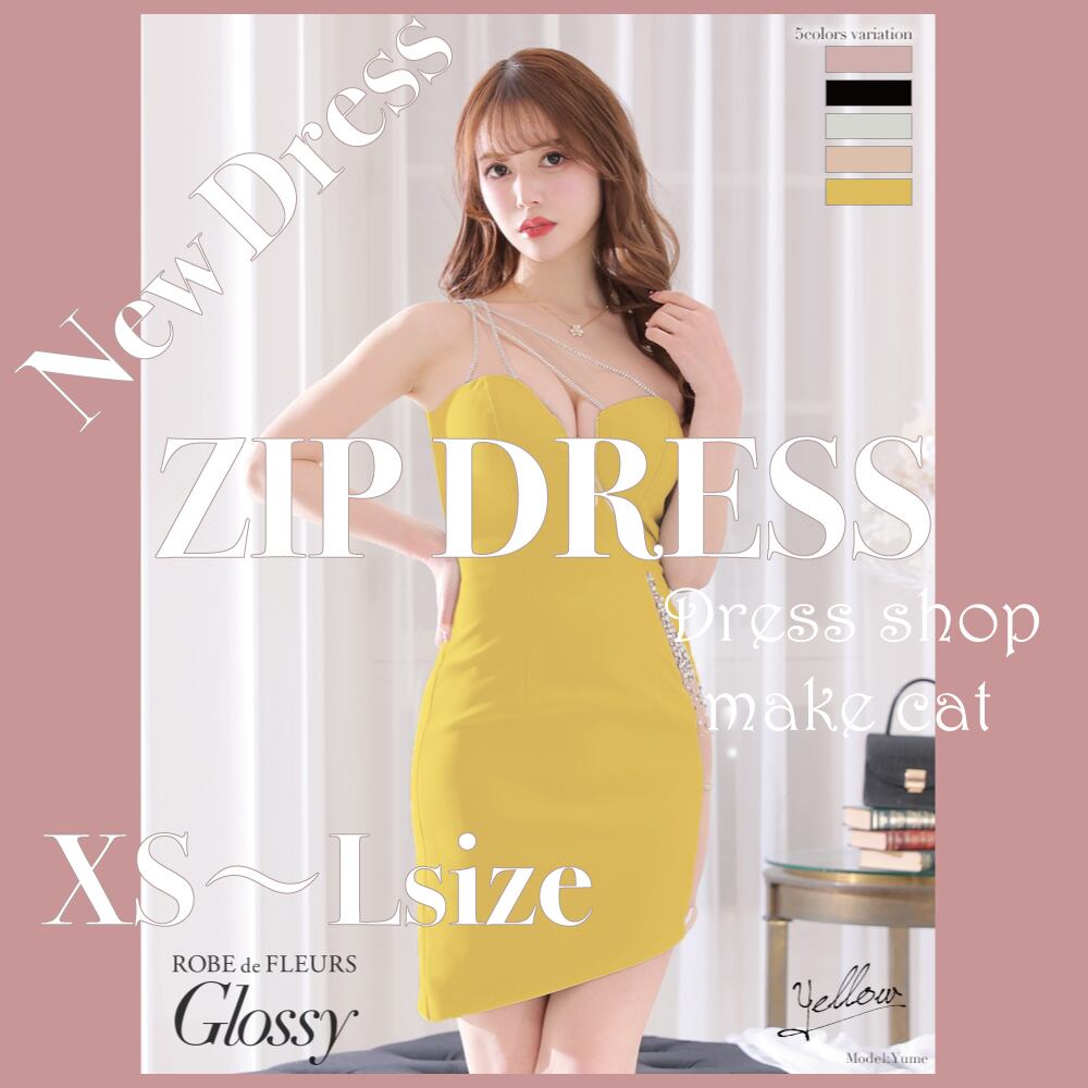 【ROBE de FLEURS Glossy】【即納】ジップ×サイドチュールタイトミニドレス(GL2507)【税込】