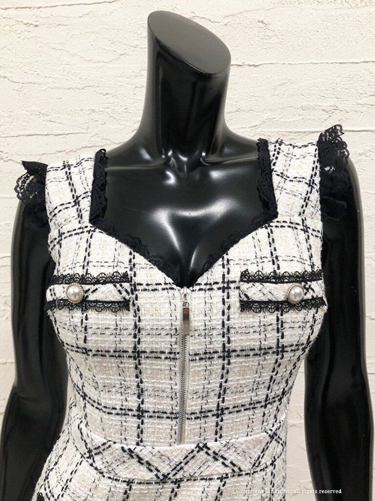 【an】【即納】【an Tweed Collection 】ツイード/ レース/ ボタンデザイン/ フロントジップ/ ZIP/ ミニドレス/ キャバドレス[OF05] [AOC3312]【税込】