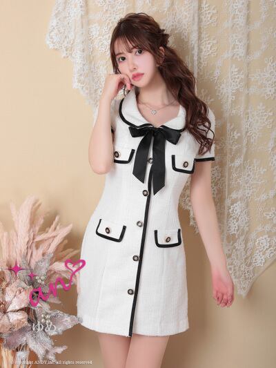 【an】【即納】【an Tweed Collection 】ツイード/ ハイネック/ ボタンデザイン/ ライン切り替え/ ミニドレス/ キャバドレス [3337]【税込】
