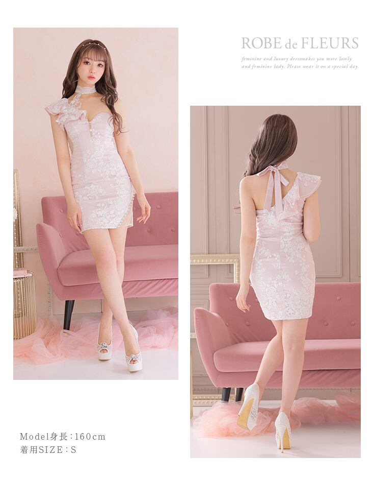 【ROBE de FLEURS】【即納】刺繍レースアシンメトリータイトミニドレス[パールストラップ付き](fm2485) 2485【税込】