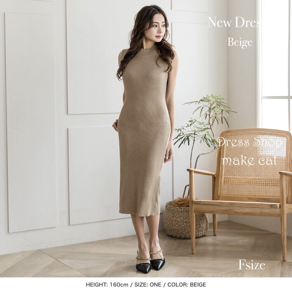【SALE】【即納】ハイネックノースリーブタイトニットワンピース/ 22148