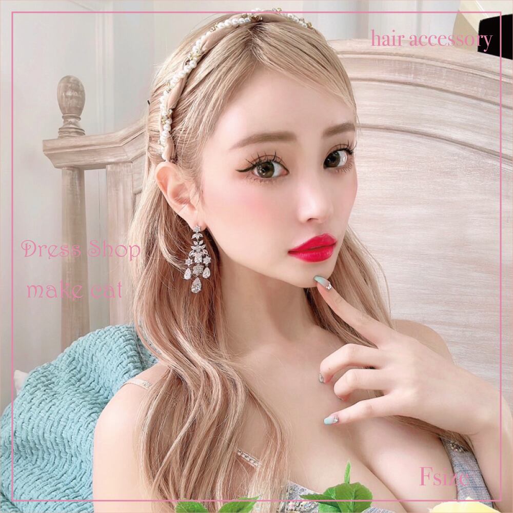 こちらは小粒なパールとゴールドビジューのスパイラルに飾り、上品に仕上げたカチューシャ。