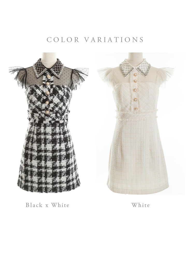 【ROBE de FLEURS 】【即納】ツイードxビジュー襟台形ミニドレス 2494 (fm2494A)