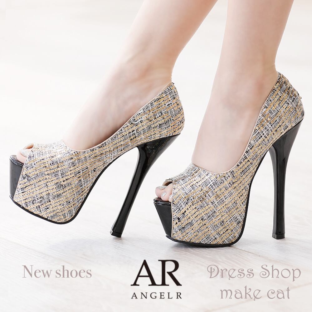 【Angel R】【即納】[15cm スパンコールメッシュオープントゥハイヒール]AngelR SH034 034(エンジェルアール)|SH034【税込】