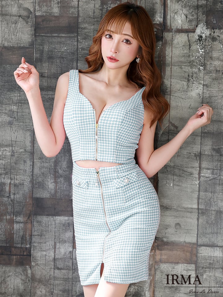 【IRMA JEAN MACLEAN】【即納】フロントジップ/ ノースリーブ/ Vネック/ タイト/ ミニドレス/ キャバドレス[31287]【税込】