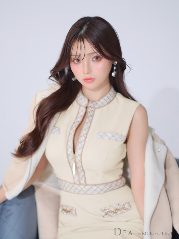 【DEA by ROBE de FLEURS 】【即納】【当店特別価格】【税込】フロントジッパー×ラメツイードミニドレス 2962 (DE2962)