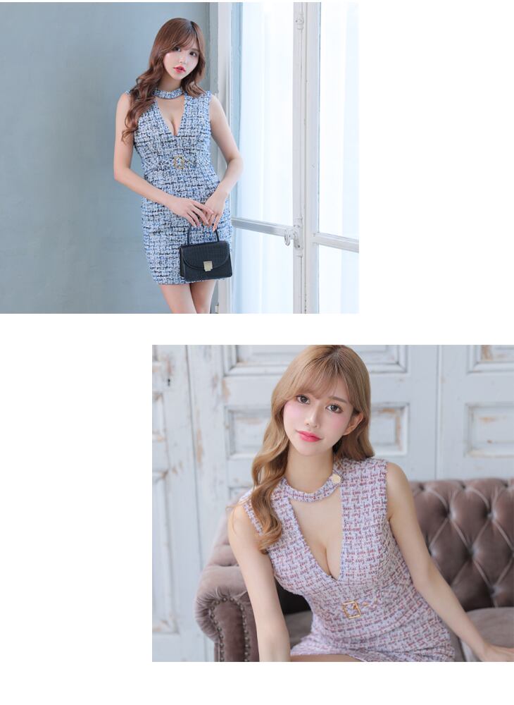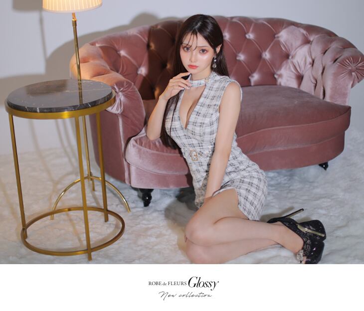 【ROBE de FLEURS Glossy】【即納】【当店特別価格】【税込】ツイード×チョーカー風ベルトミニドレス(GL3147)