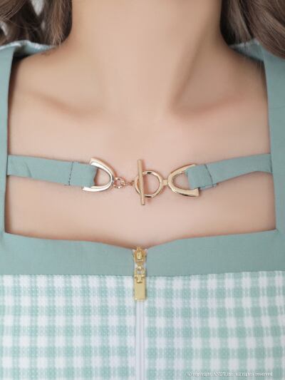 【an】【即納】ギンガムチェック/ フロントジップ/ スクエアネック/ 袖あり/ ショートスリーブ/ セットアップ/ タイト/ ミニドレス/ キャバドレス 3450 [AOC3450]