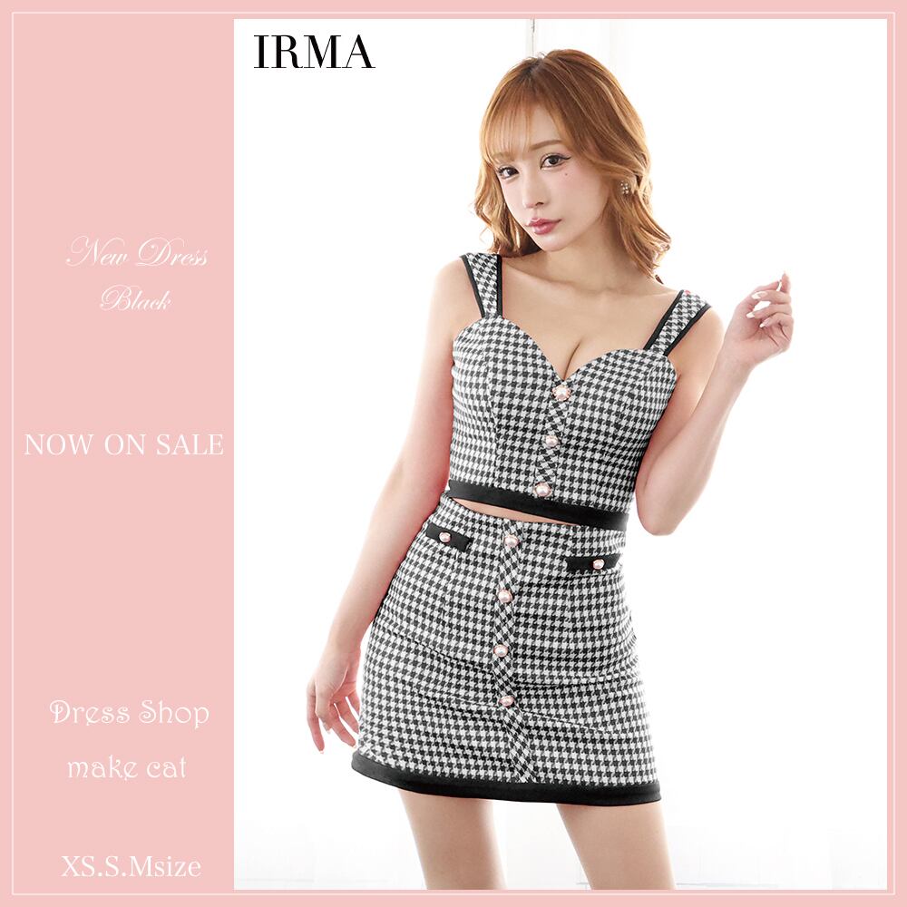 【IRMA JEAN MACLEAN】【即納】【当店特別価格】【税込】セットアップ/ 千鳥柄/ パール/ ノースリーブ/ 台形スカート/ ミニドレス/ キャバドレス [35895]