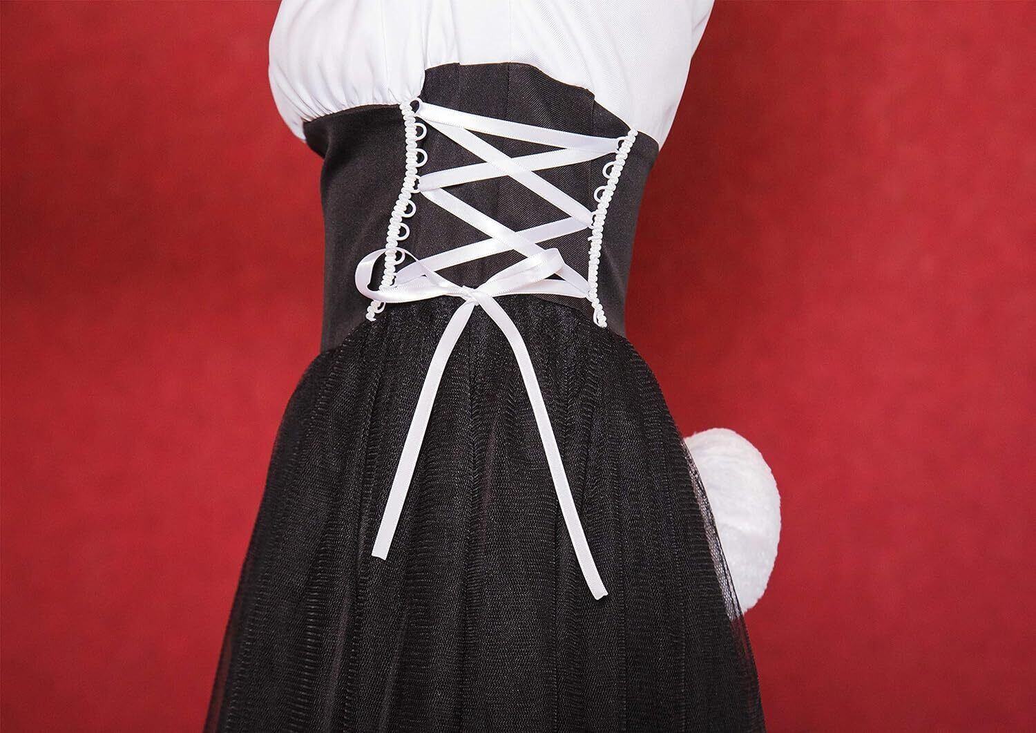 袖がオフショルダーとパフスリーブの2WAYデザインのバニーコスチューム。