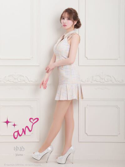 【an】【即納】【当店特別価格】【税込】襟付き/ チェック/ ツイード/ ノースリーブ/ チェーン/ プリーツ/ Aライン/ セットアップ/ ミニドレス/ キャバドレス [AOC3606]